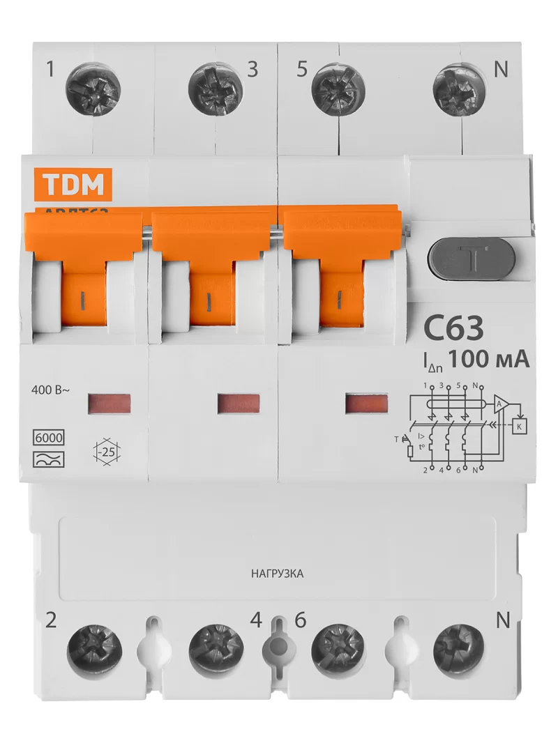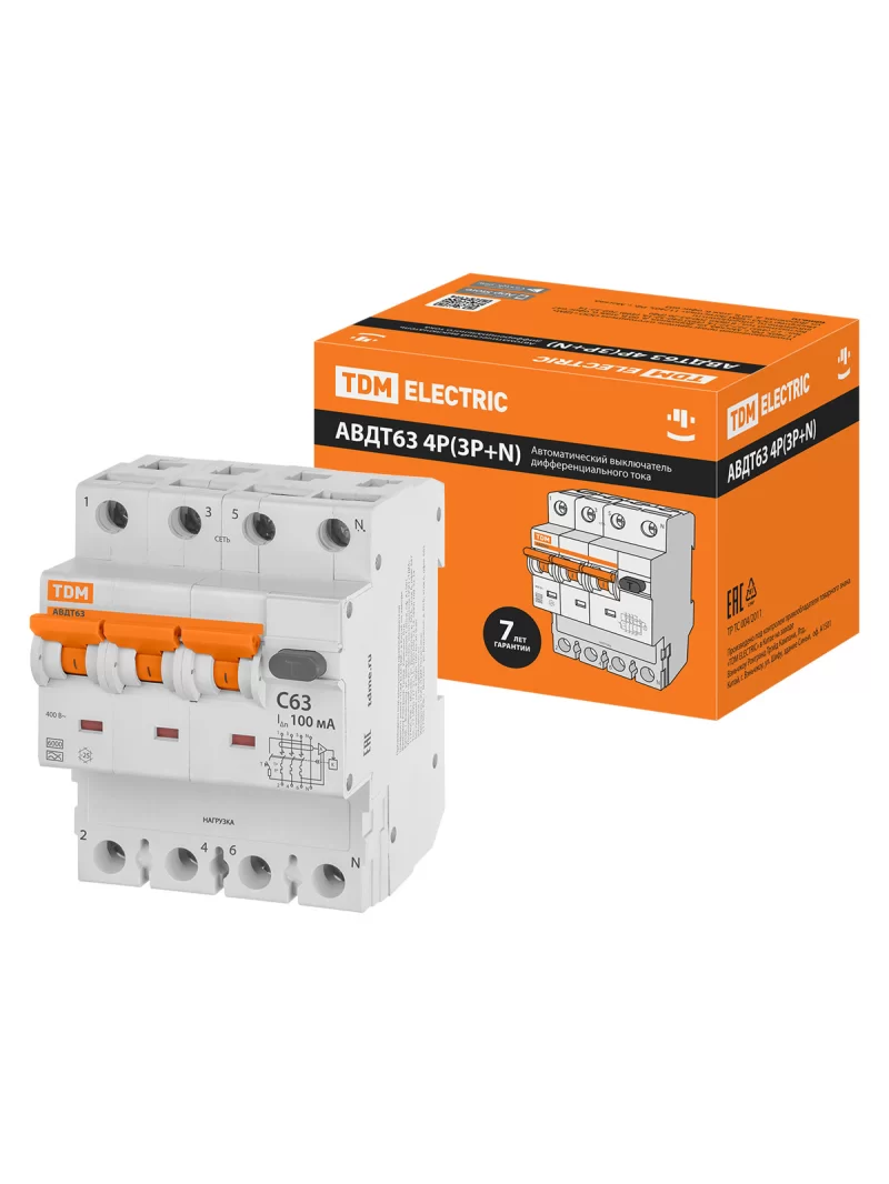 АВДТ 63 4P(3Р+N) C63 100мА 6кА тип А TDM SQ0202-0056 – ООО «Эмсилайт»
