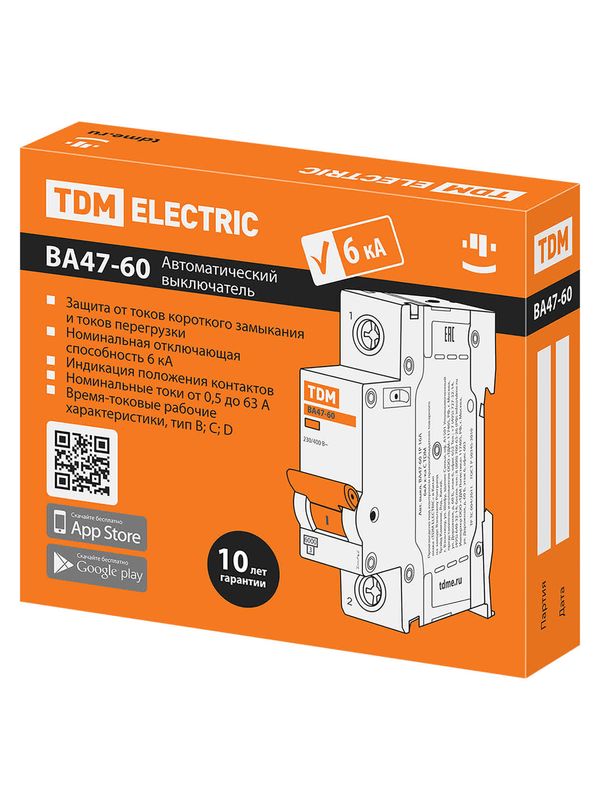 Авт. выкл. ВА47-60 1Р 63А 6кА х-ка В TDM
