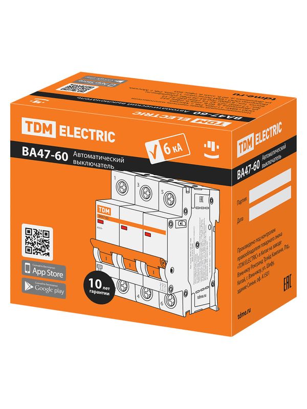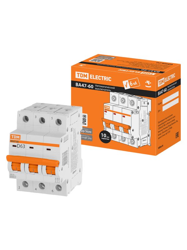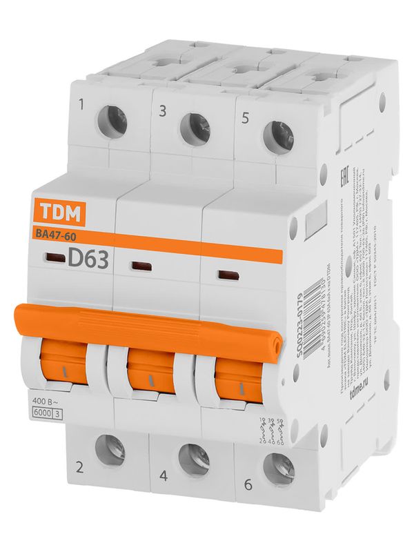 / Авт. выкл. ВА47-60 3Р 63А 6кА х-ка D TDM