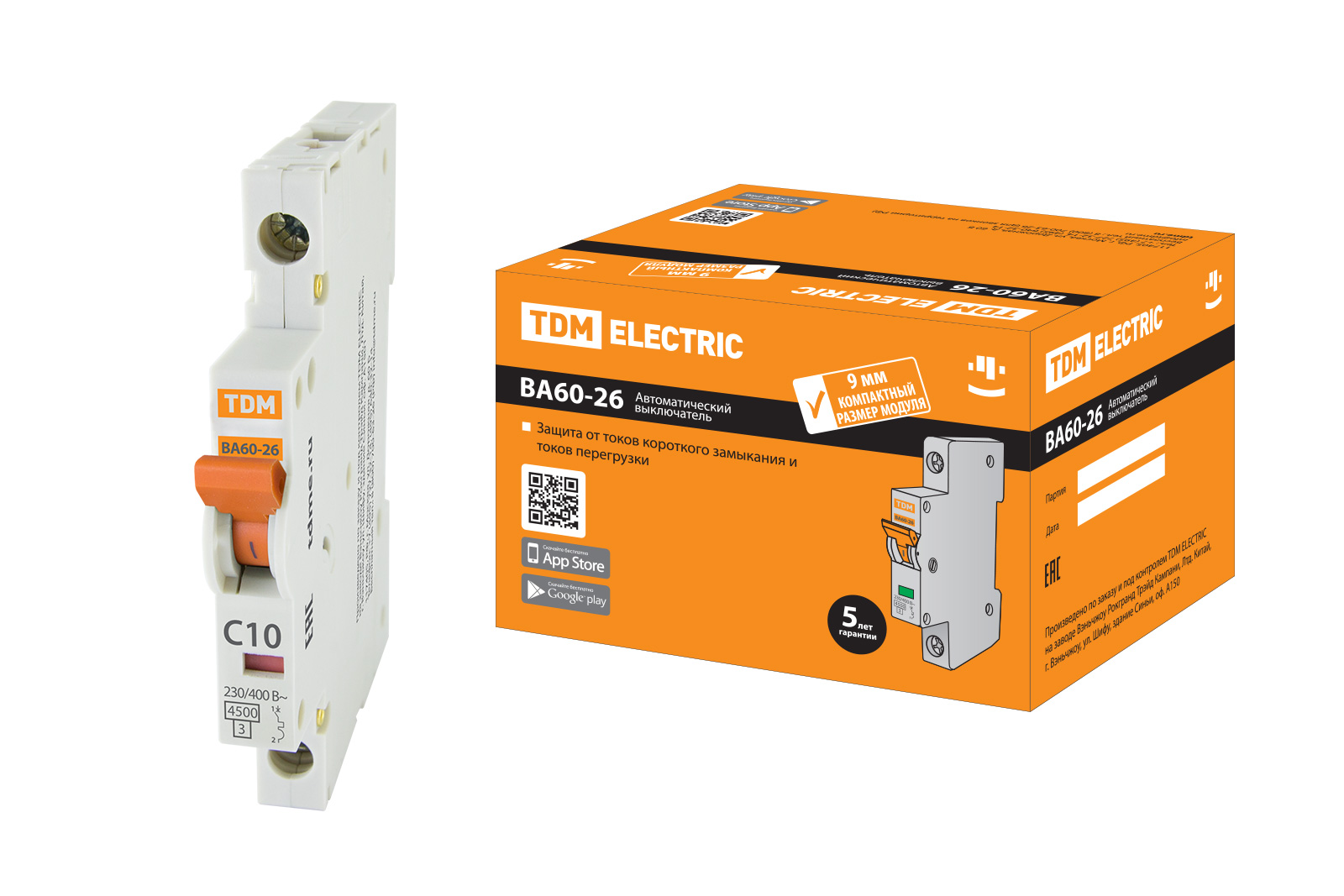 Авт. выкл. ВА60-26-14 1P 10А 4,5кА х-ка С компакт TDM SQ0206-0602 – ООО «Эмсилайт»