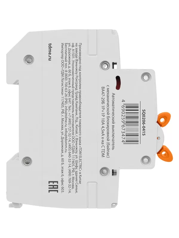 Автоматический выключатель с механической блокировкой (байпас) ВА47-29Б 1Р+1Р 10А 4,5кА х-ка C TDM