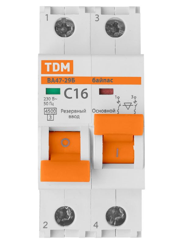 / Автоматический выключатель с механической блокировкой (байпас) ВА47-29Б 1Р+1Р 16А 4,5кА х-ка C TDM