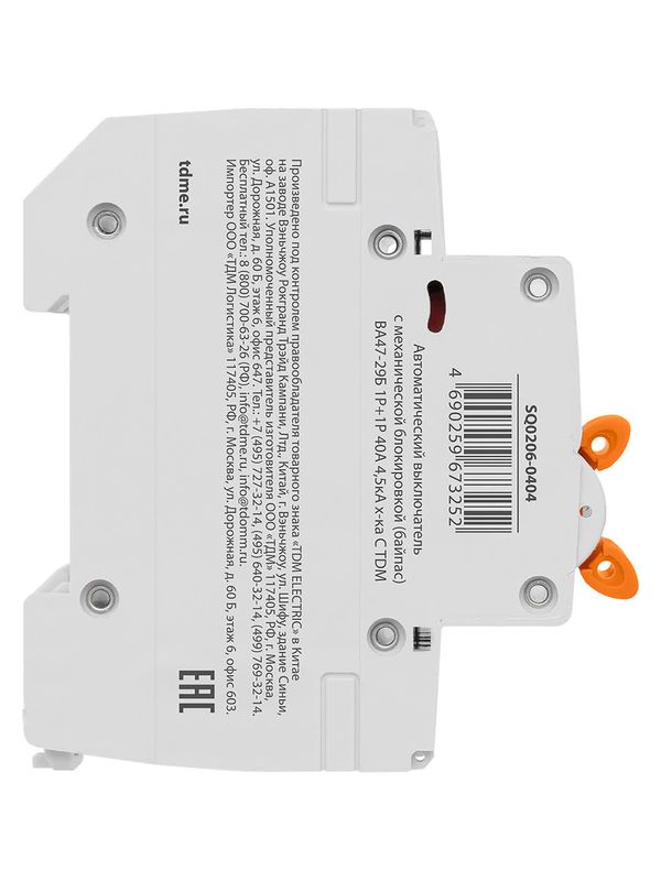 / Автоматический выключатель с механической блокировкой (байпас) ВА47-29Б 1Р+1Р 40А 4,5кА х-ка C TDM