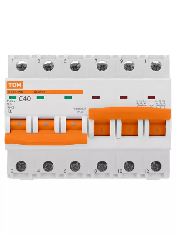 Автоматический выключатель с механической блокировкой (байпас) ВА47-29Б 3Р+3Р 40А 4,5кА х-ка C TDM