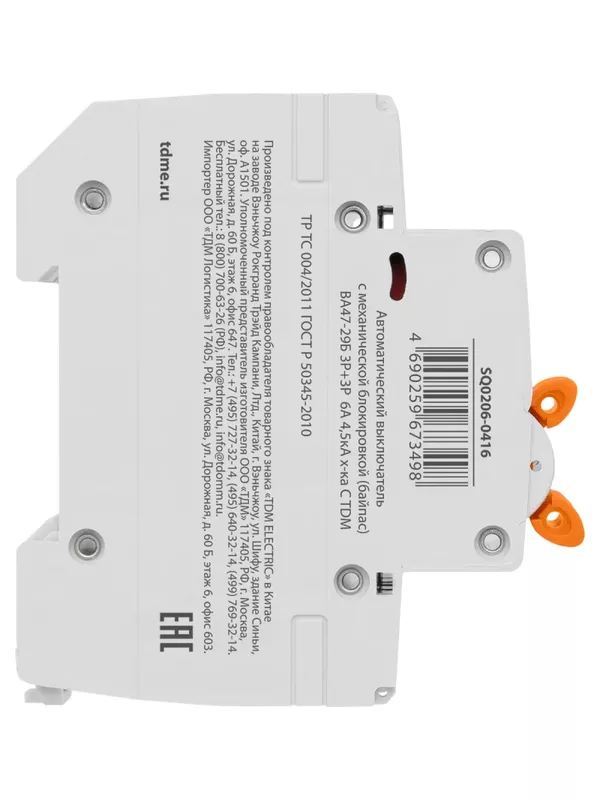 / Автоматический выключатель с механической блокировкой (байпас) ВА47-29Б 3Р+3Р 6А 4,5кА х-ка C TDM