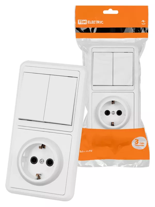Блок комбинированный БКВР 2-х кл. выкл + розетка с/з TDM