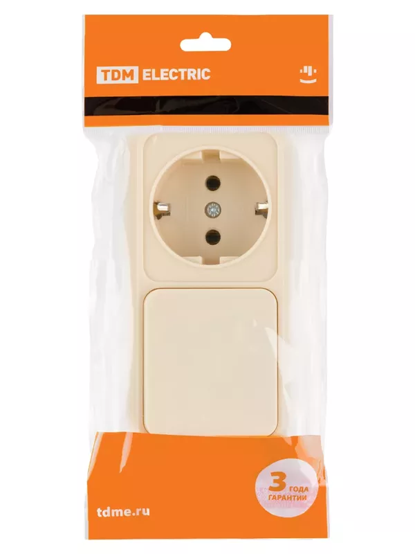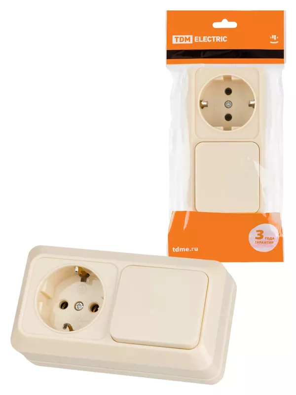 / Блок комбинированный выкл. 1-кл. 10А + розетка 2П+З 16А 250В БКВР IP20 сл. кость «Ладога» TDM