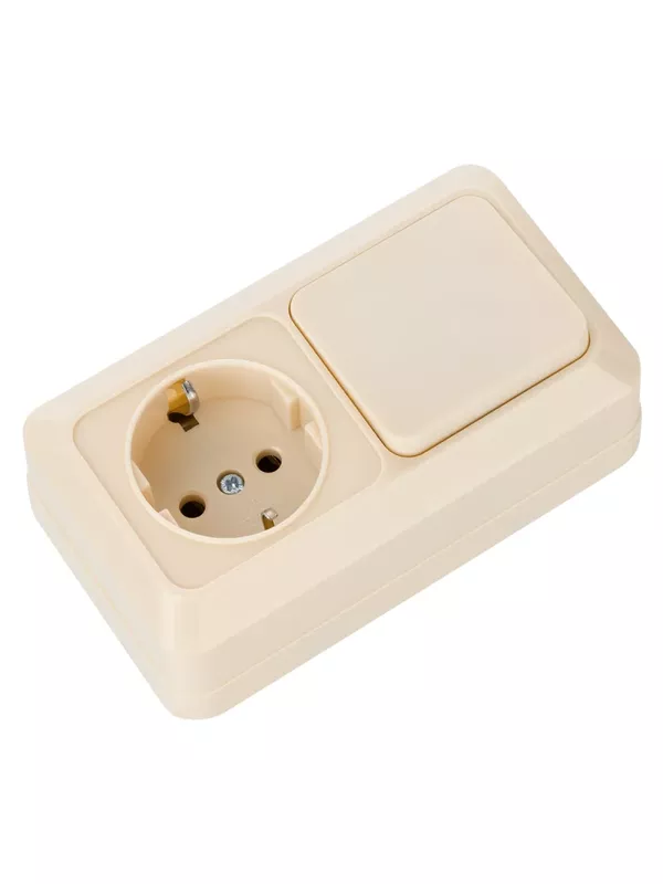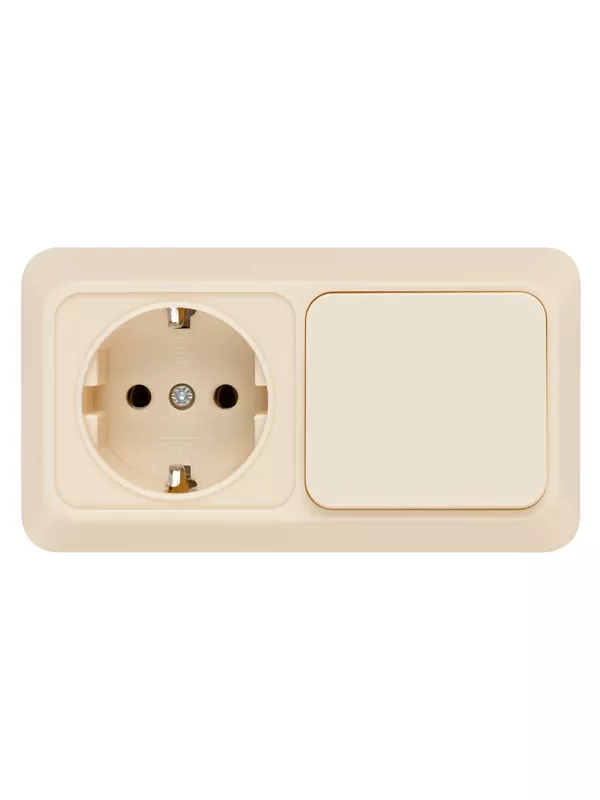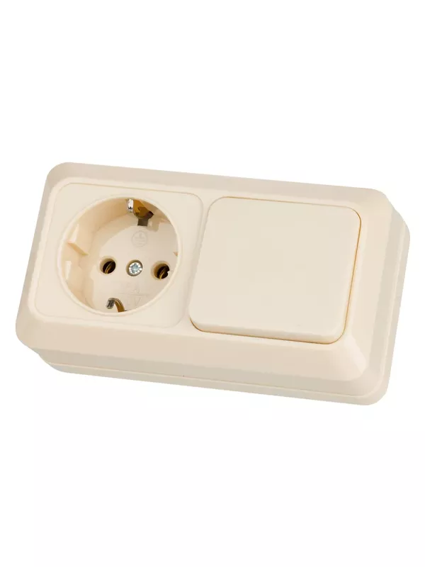 Блок комбинированный выкл. 1-кл. 10А + розетка 2П+З 16А 250В БКВР IP20 сл. кость «Ладога» TDM