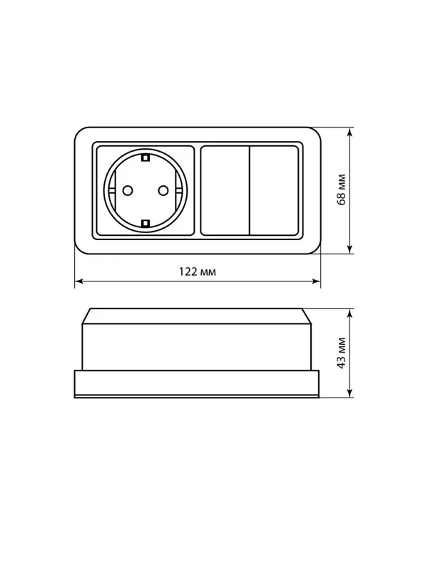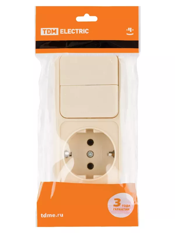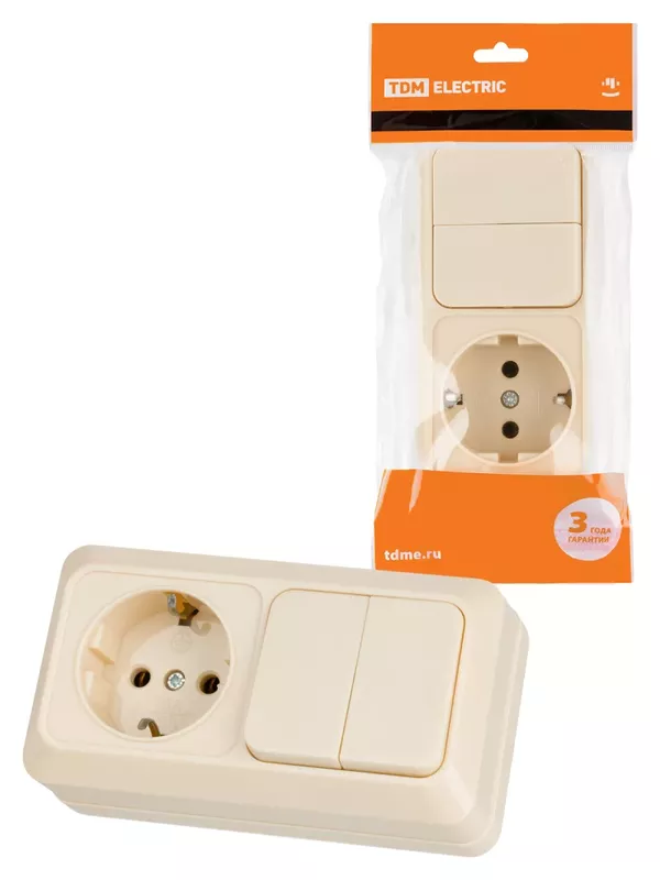 / Блок комбинированный выкл. 2-кл. 10А + розетка 2П+З 16А 250В БКВР IP20 сл. кость «Ладога» TDM