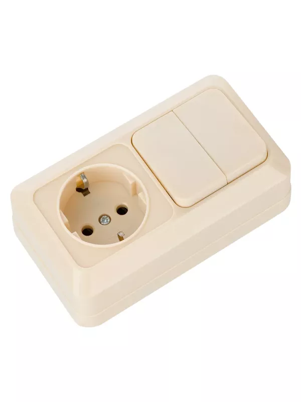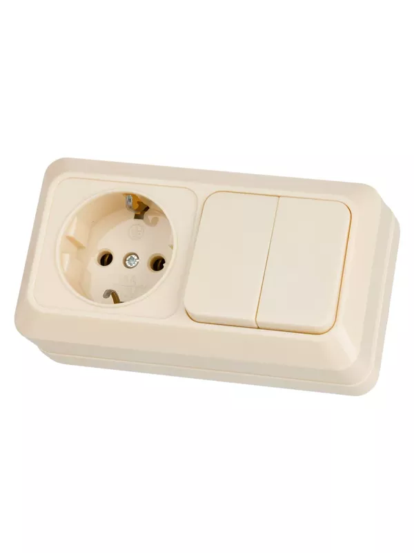 Блок комбинированный выкл. 2-кл. 10А + розетка 2П+З 16А 250В БКВР IP20 сл. кость «Ладога» TDM