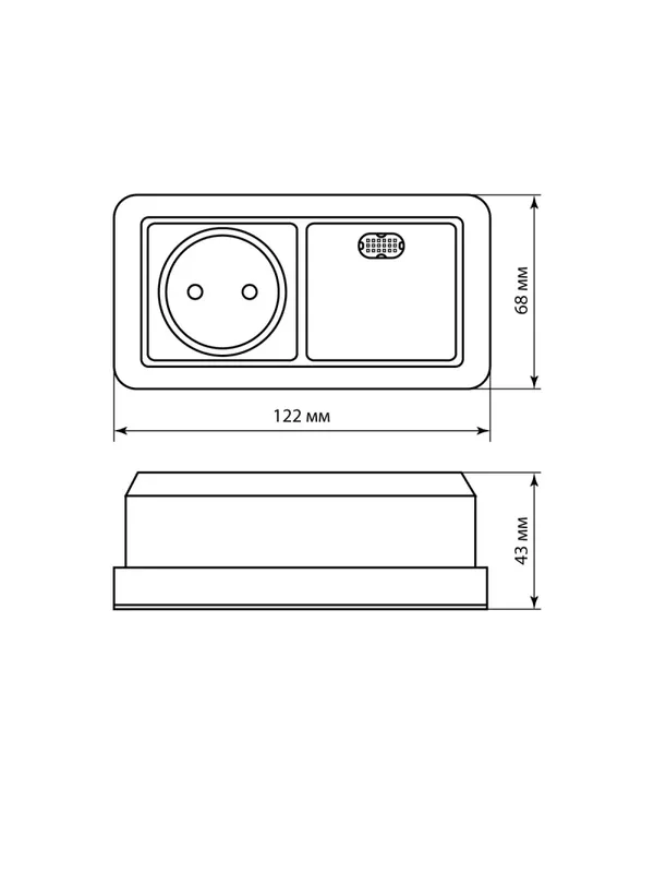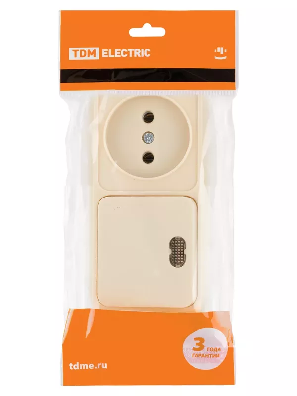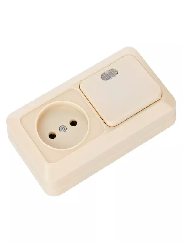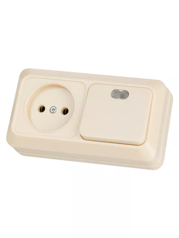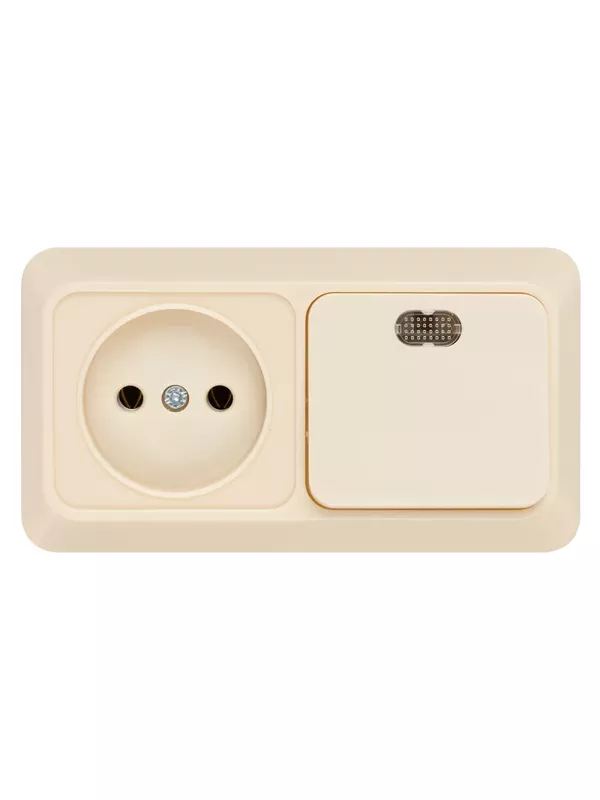 / Блок комбинированный выключатель 1-кл. с подсветкой 10А + розетка 2П 10А 250В БКВР IP20 сл. кость «Ладога» TDM