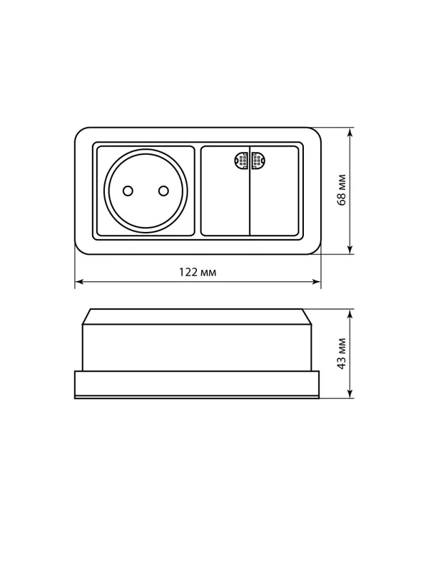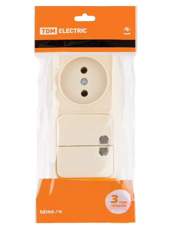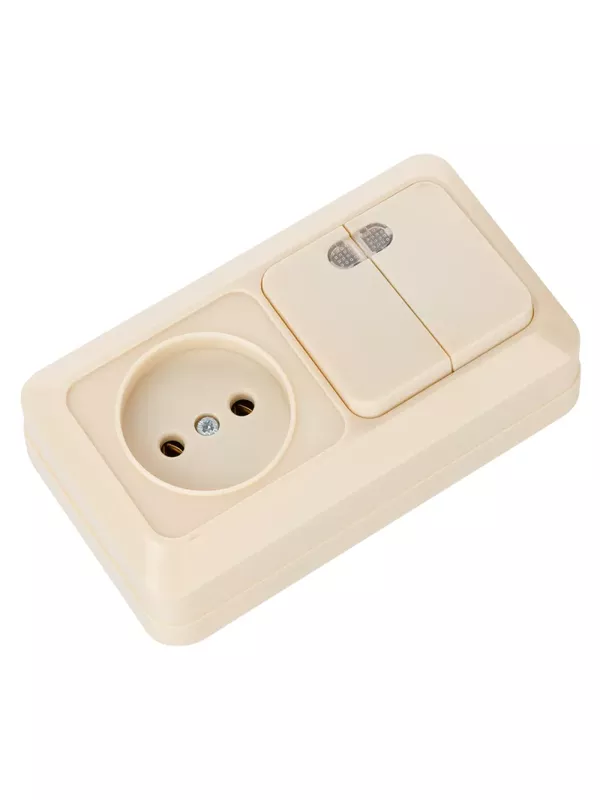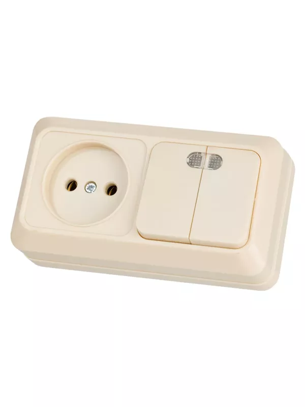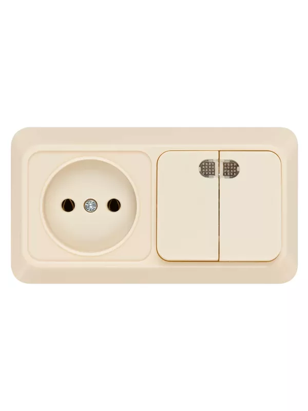 / Блок комбинированный выключатель 2-кл. 10А с подсветкой + розетка 2П 10А 250В БКВР IP20 сл. кость «Ладога» TDM