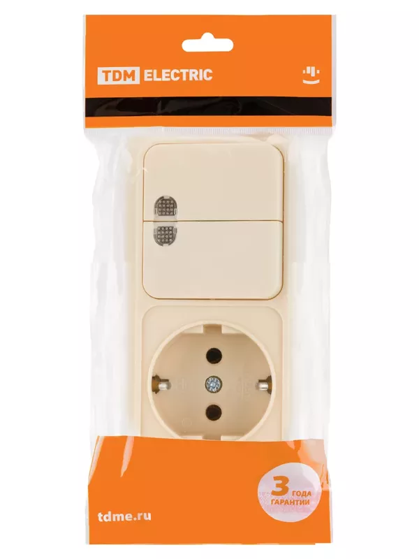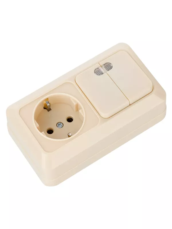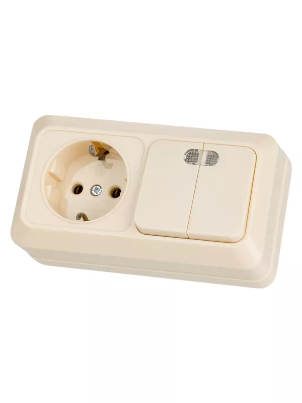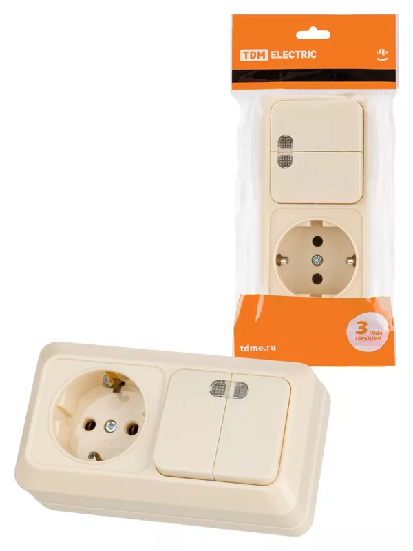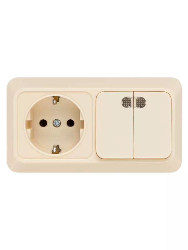 / Блок комбинированный выключатель 2-кл. 10А с подсветкой + розетка 2П+З 16А 250В БКВР IP20 сл. кость «Ладога» TDM