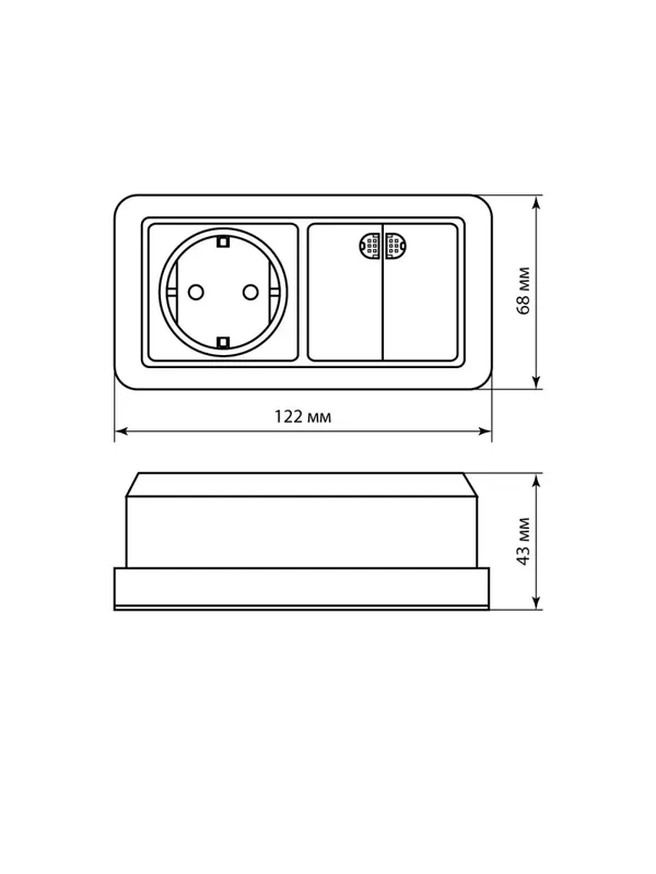 Блок комбинированный выключатель 2-кл. 10А с подсветкой + розетка 2П+З 16А 250В БКВР IP20 сл. кость «Ладога» TDM