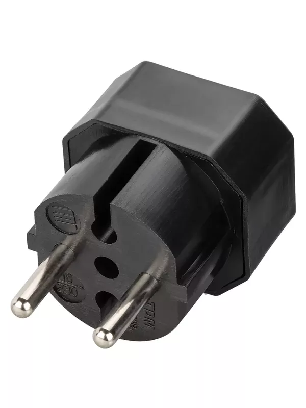Вилка круглая плоская с кольцом черная 16А 250В TDM
