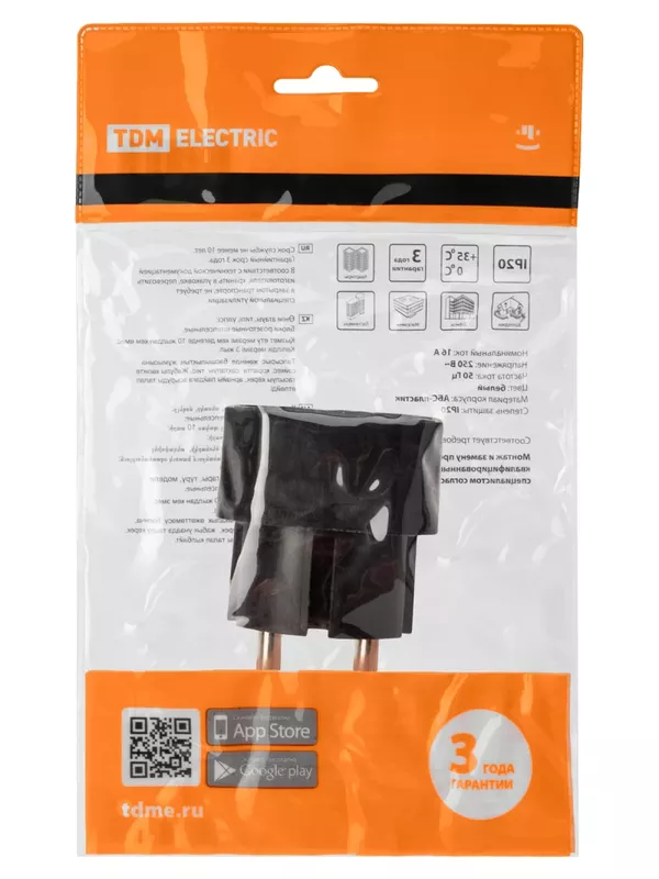 / Блок на 2 гнезда 2П 2,5 А 250 B под плоскую вилку черный TDM