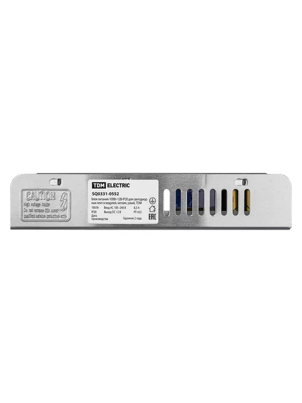 Блок питания 100Вт-12В-IP20 для светодиодных лент и модулей, металл, узкий, TDM