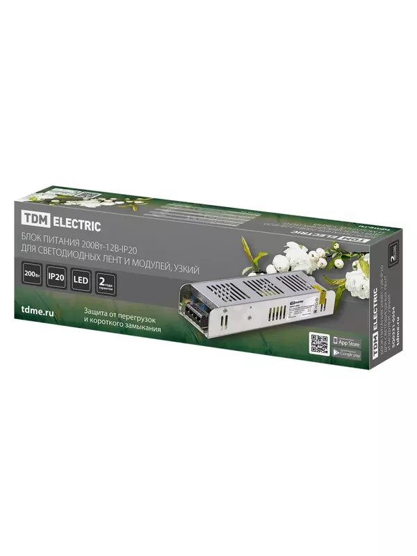 / Блок питания 200Вт-12В-IP20 для светодиодных лент и модулей, металл, узкий, TDM