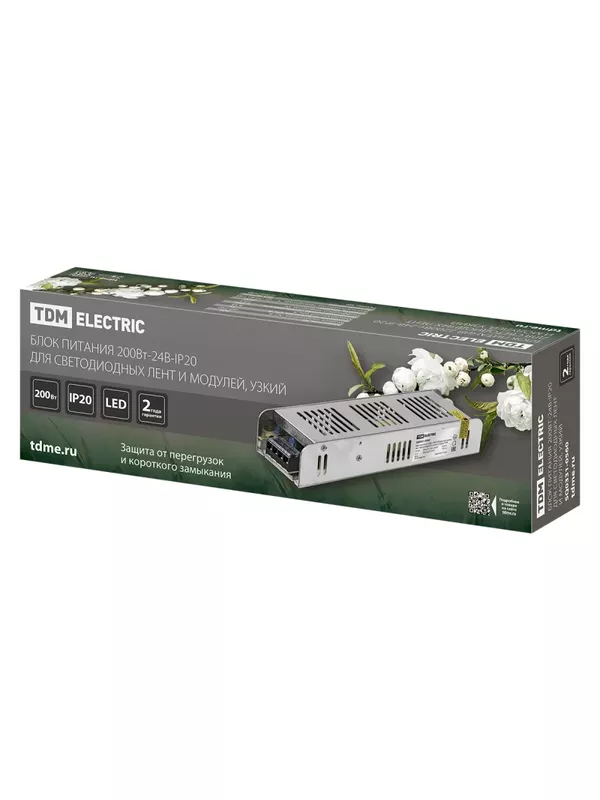 / Блок питания 200Вт-24В-IP20 для светодиодных лент и модулей, металл, узкий, TDM