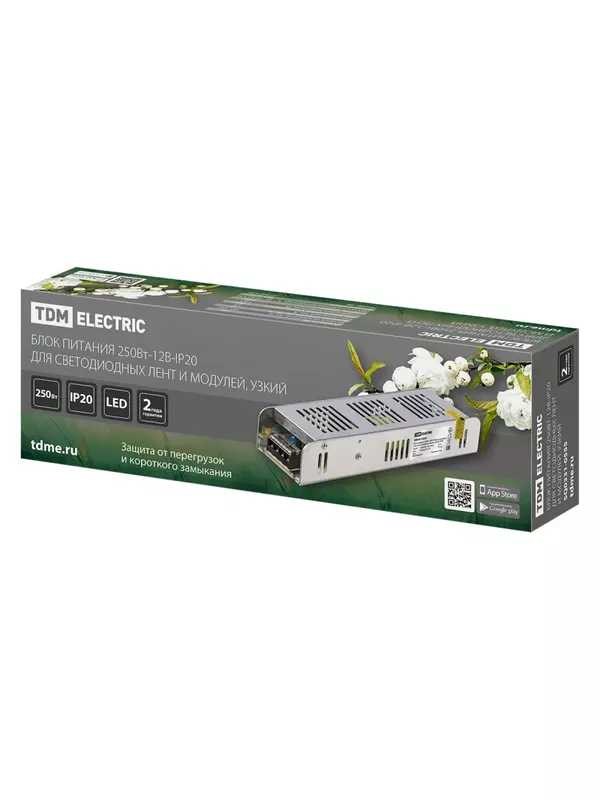 / Блок питания 250Вт-12В-IP20 для светодиодных лент и модулей, металл, узкий, TDM