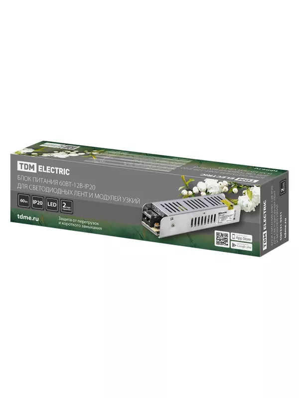 / Блок питания 60Вт-12В-IP20 для светодиодных лент и модулей, металл, узкий, TDM
