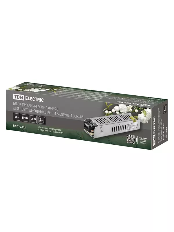 / Блок питания 60Вт-24В-IP20 для светодиодных лент и модулей, металл, узкий, TDM