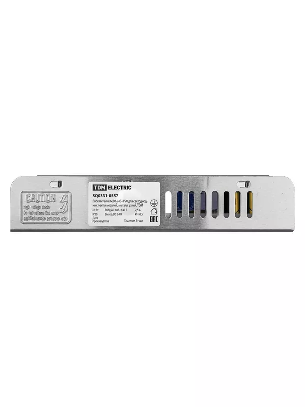 Блок питания 60Вт-24В-IP20 для светодиодных лент и модулей, металл, узкий, TDM
