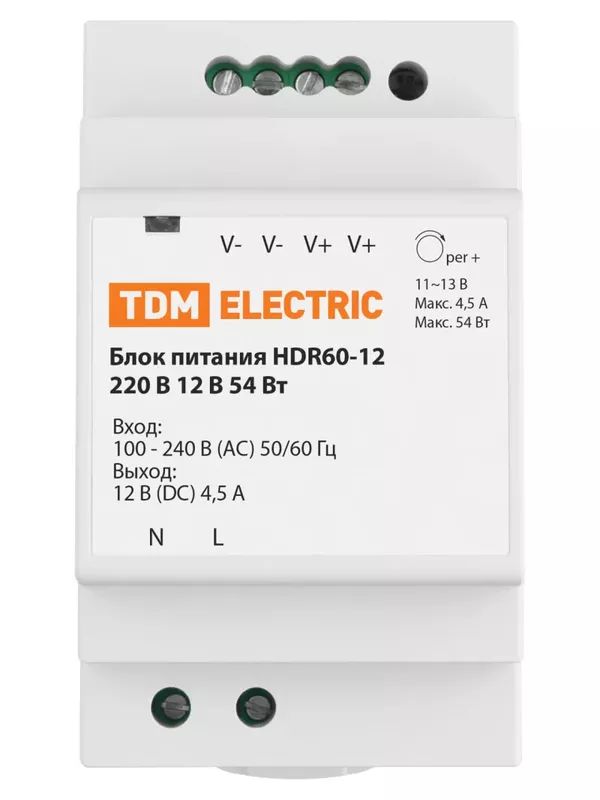 Блок питания HDR60-12, 220 В, 12 В, 54 Вт (на DIN-рейку) TDM