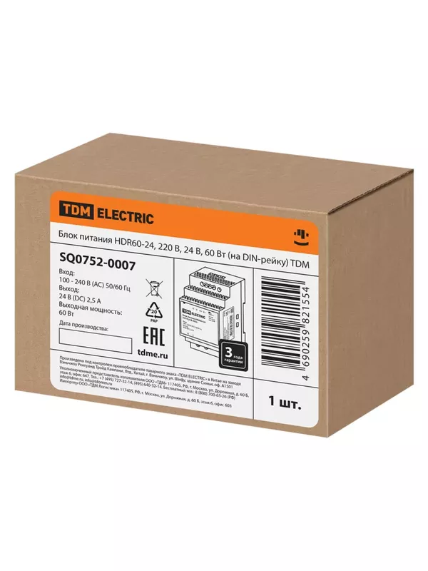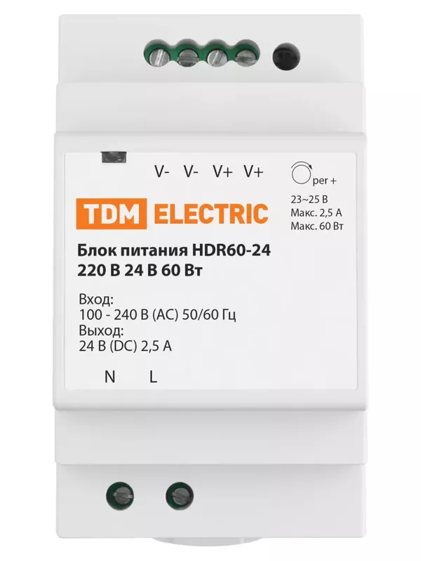 Блок питания HDR60-24, 220 В, 24 В, 60 Вт (на DIN-рейку) TDM