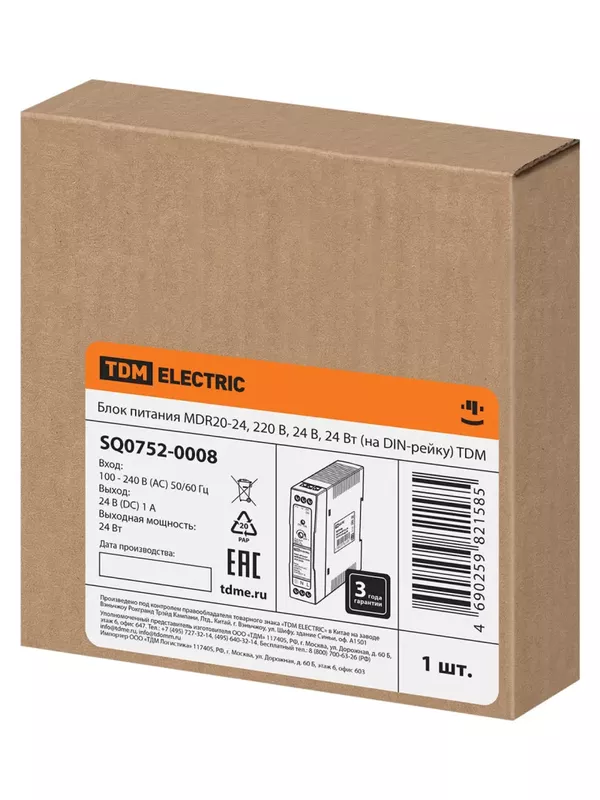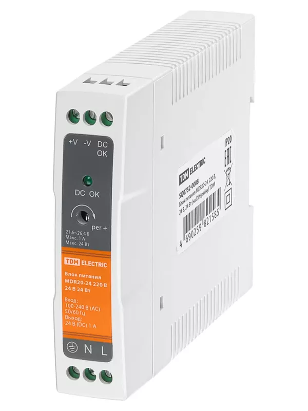 / Блок питания MDR20-24, 220 В, 24 В, 20 Вт (на DIN-рейку) TDM