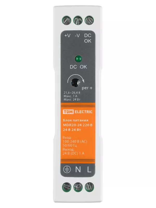 Блок питания MDR20-24, 220 В, 24 В, 20 Вт (на DIN-рейку) TDM