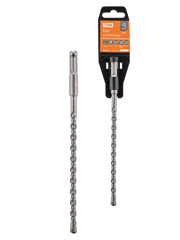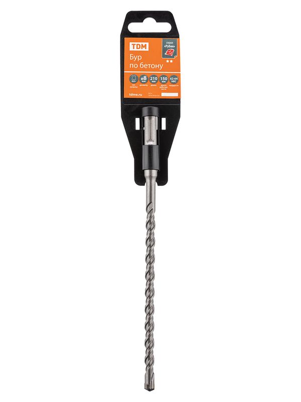 / Бур по бетону, 8×210×150 мм, SDS-Plus, 4 резца, пластиковый держатель, 1 шт, «Рубин» TDM