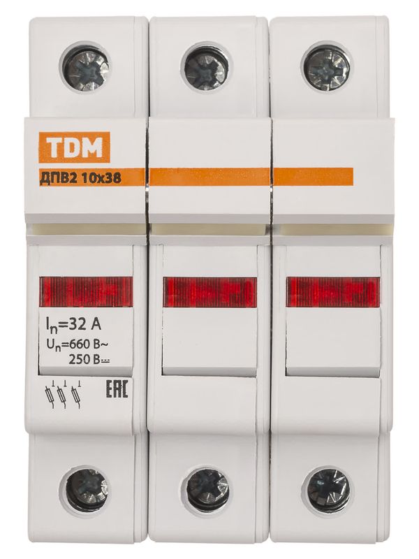 Держатель плавких вставок ДПВ2 10х38 3П TDM – ООО «Эмсилайт»