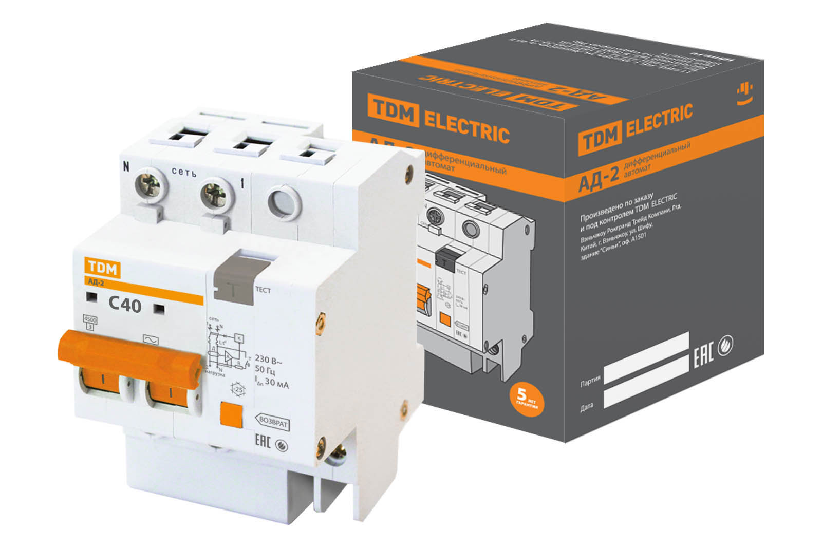Диф.автомат АД-2 2Р 40А 30мА TDM SQ0221-0004 – ООО «Эмсилайт»