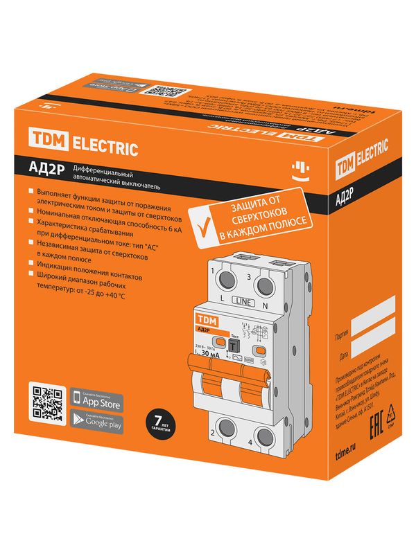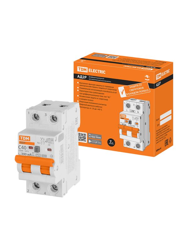 Дифференциальный автоматический выключатель АД2P 2Р С40 300мА 6кА тип АС TDM – ООО «Эмсилайт»