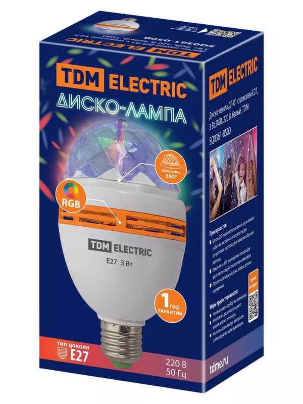 / Диско-лампа ДЛ-01 с цоколем Е27, 3 Вт, RGB, 220 В, белый, TDM