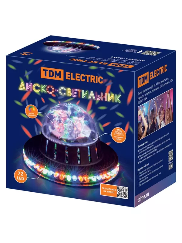 Диско-светильник ДС-01, 4,5 Вт, многоцвет., горизонт. и вертик. проекции, 220 В, черный, TDM