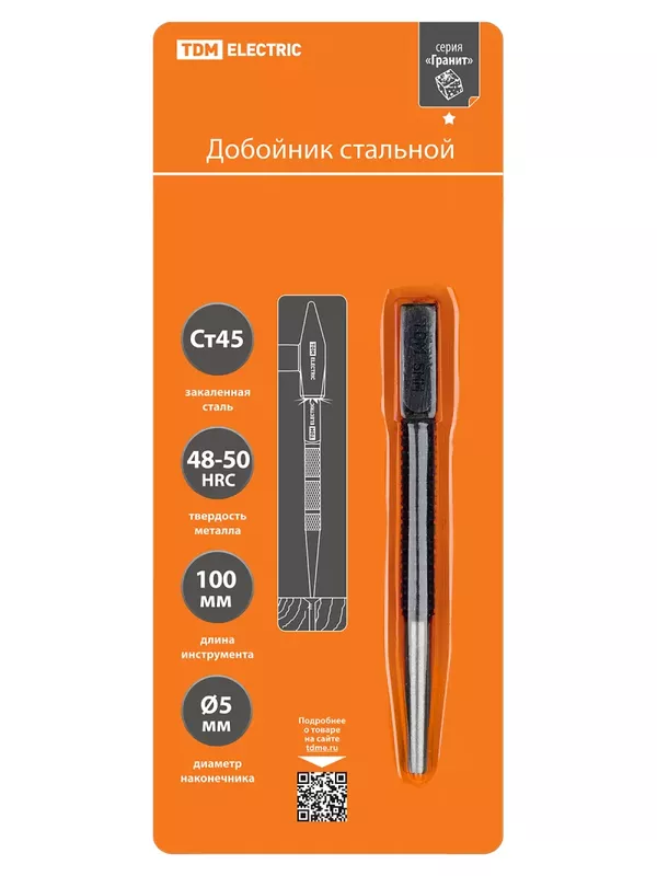 / Добойник Ø5 мм, длина 100 мм, углеродистая сталь, блистер «Гранит» TDM