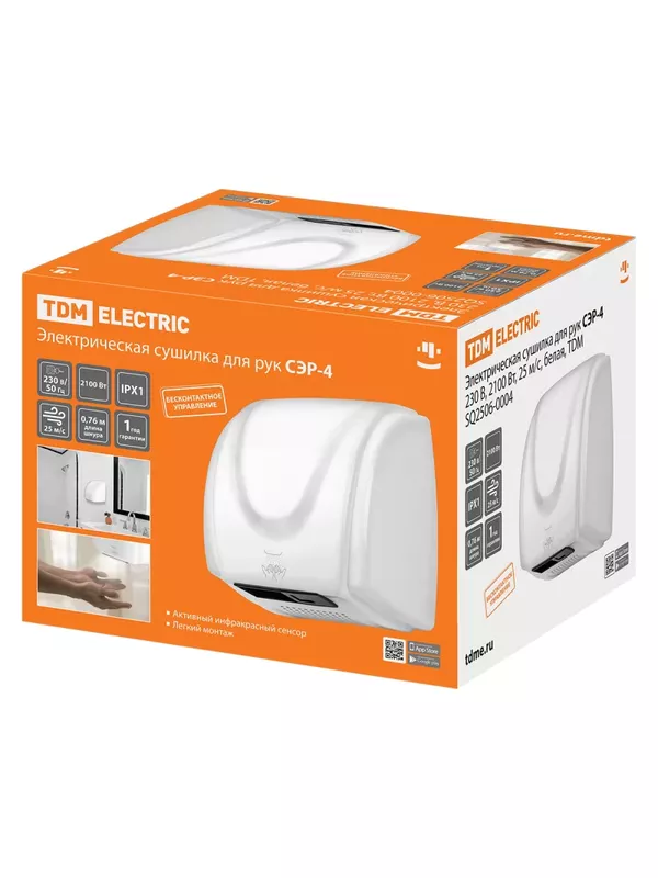 / Электрическая сушилка для рук СЭР-4, 230 В, 2100 Вт, 25 м/с, белая, TDM
