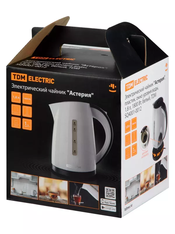 Электрический чайник "Астерия", пластик, окно уровня воды, 1,8 л, 1800 Вт, белый, TDM – ООО «Эмсилайт»