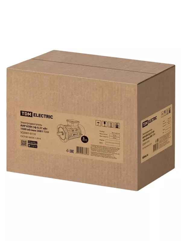 / Электродвигатель АИР 63B4 3ф 0,37 кВт 1500 об/мин 3081 TDM