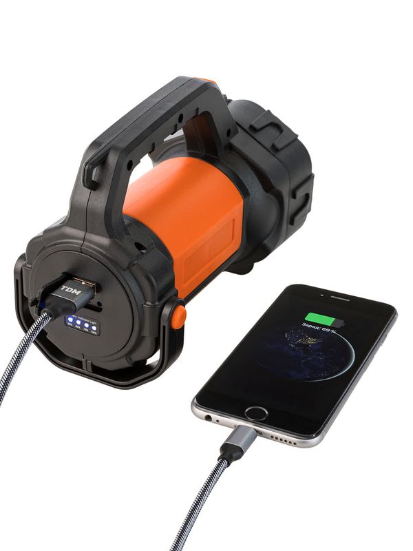 Фонарь светодиод. «Прожектор 6», 5 Вт LED+10 SMD+9 SMD, 400 лм, 3,7 В 2×18650 2,4 А*ч, USB, TDM