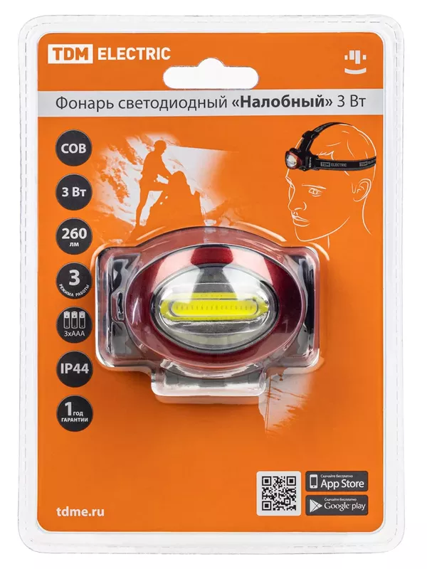 / Фонарь светодиодный «Налобный» 3 Вт COB, 260 лм, бат. 3*AAA TDM