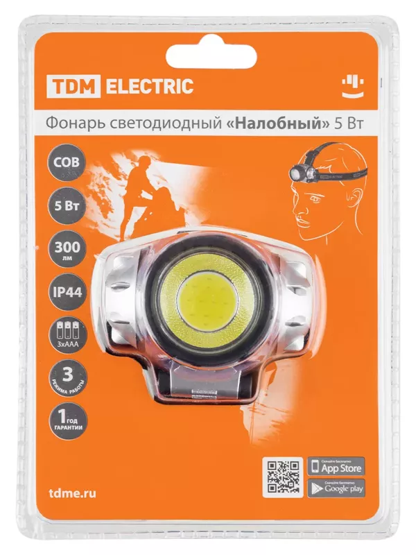 / Фонарь светодиодный «Налобный» 5 Вт COB, 300 лм, бат. 3*AAA TDM