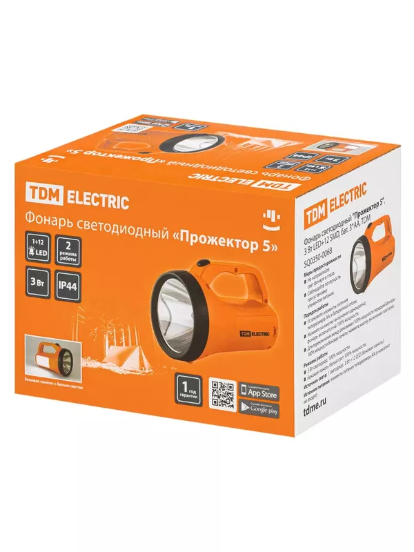 / Фонарь светодиодный «Прожектор 5», 3 Вт LED+12 SMD, бат. 3*АА, TDM