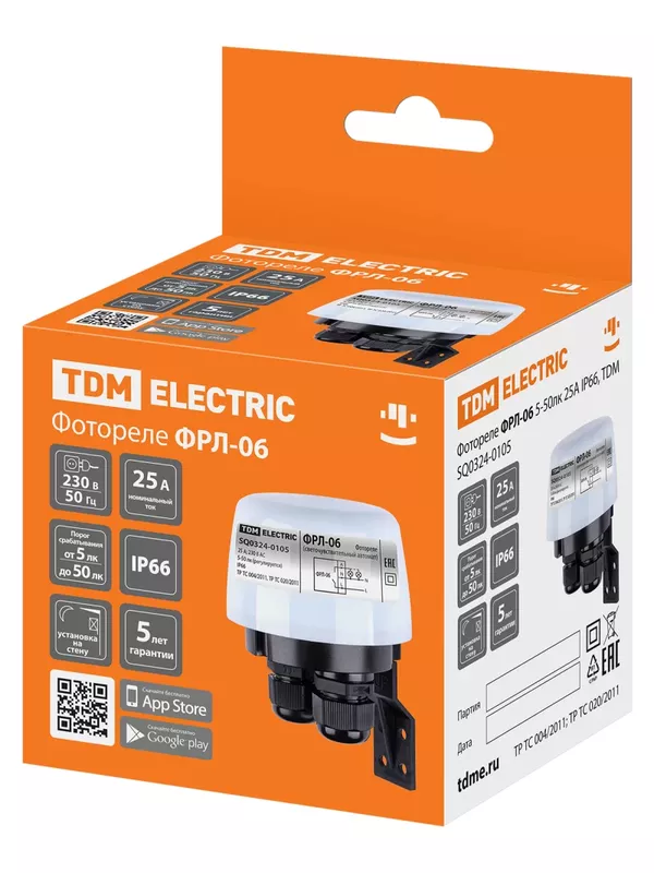 / Фотореле ФРЛ-06 5-50лк 25А IP66, TDM