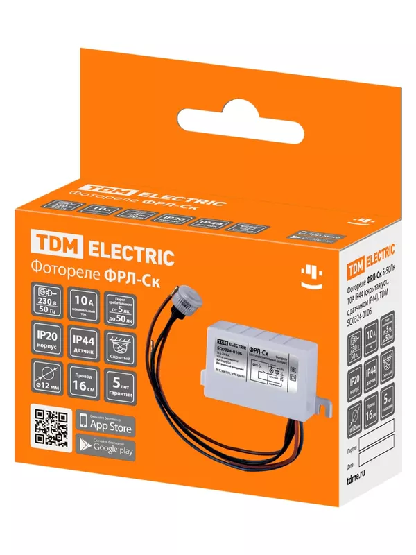/ Фотореле ФРЛ-Ск 5-50лк 10А IP44 (скрытая уст., с датчиком IP44), TDM