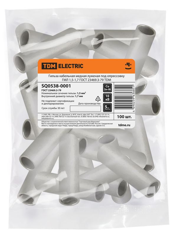 / Гильза кабельная медная луженая под опрессовку ГМЛ 1,5-1,7 ГОСТ 23469.3-79 TDM