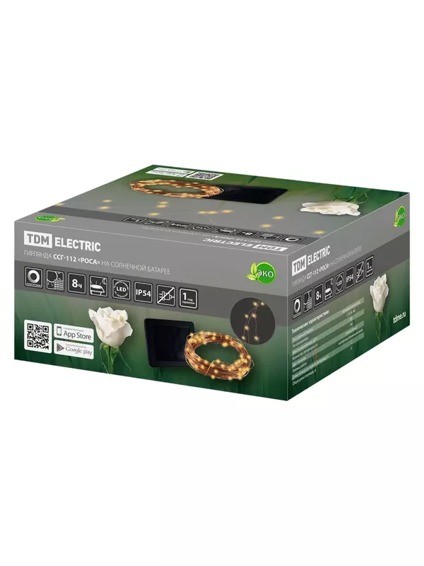 / Гирлянда CCГ-112 «Роса» на солнечной батарее, 10 м, 100 LED, теплый белый, IP54, TDM
