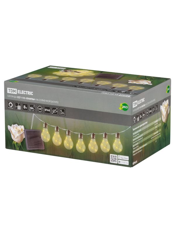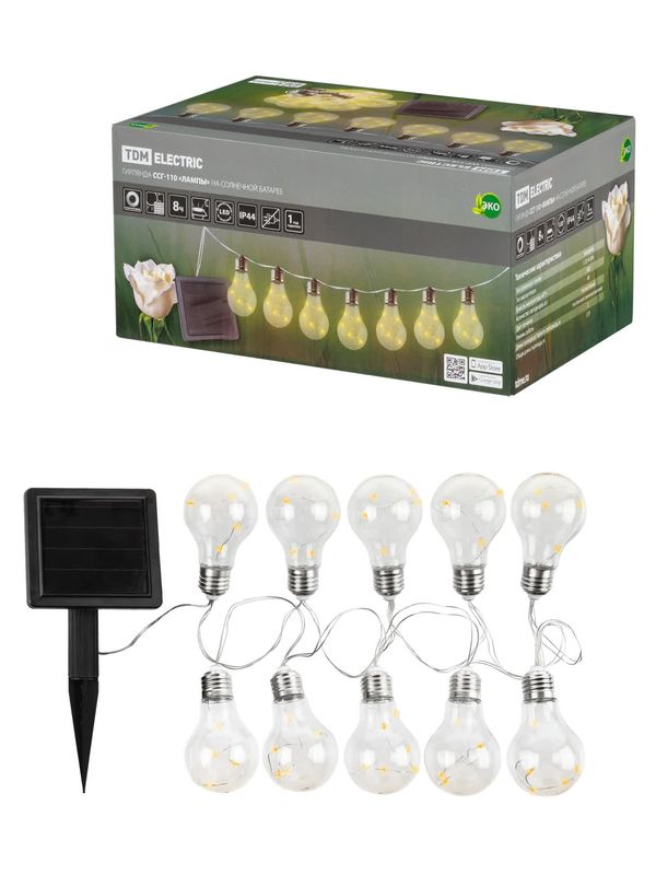 / Гирлянда ССГ-110 «Лампы» на солнечной батарее, 1,3 м, 60 LED, теплый белый, IP44, TDM